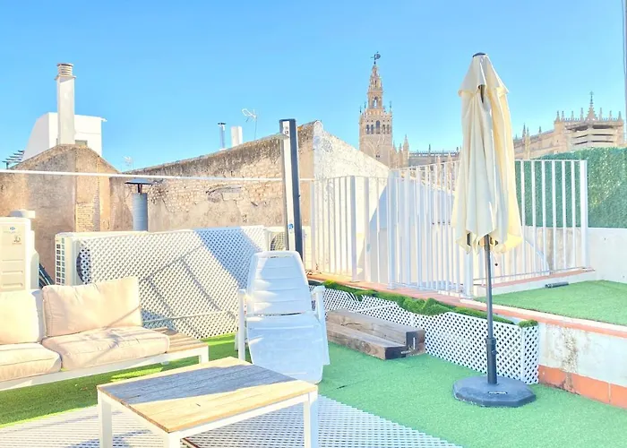 Situata a soli 8 minuti a piedi dalla Torre dell'Oro, la villa Top-Notch Downtown House With Private Rooftop Terrace And Parking Opt Siviglia invita gli ospiti a godersi un solarium.